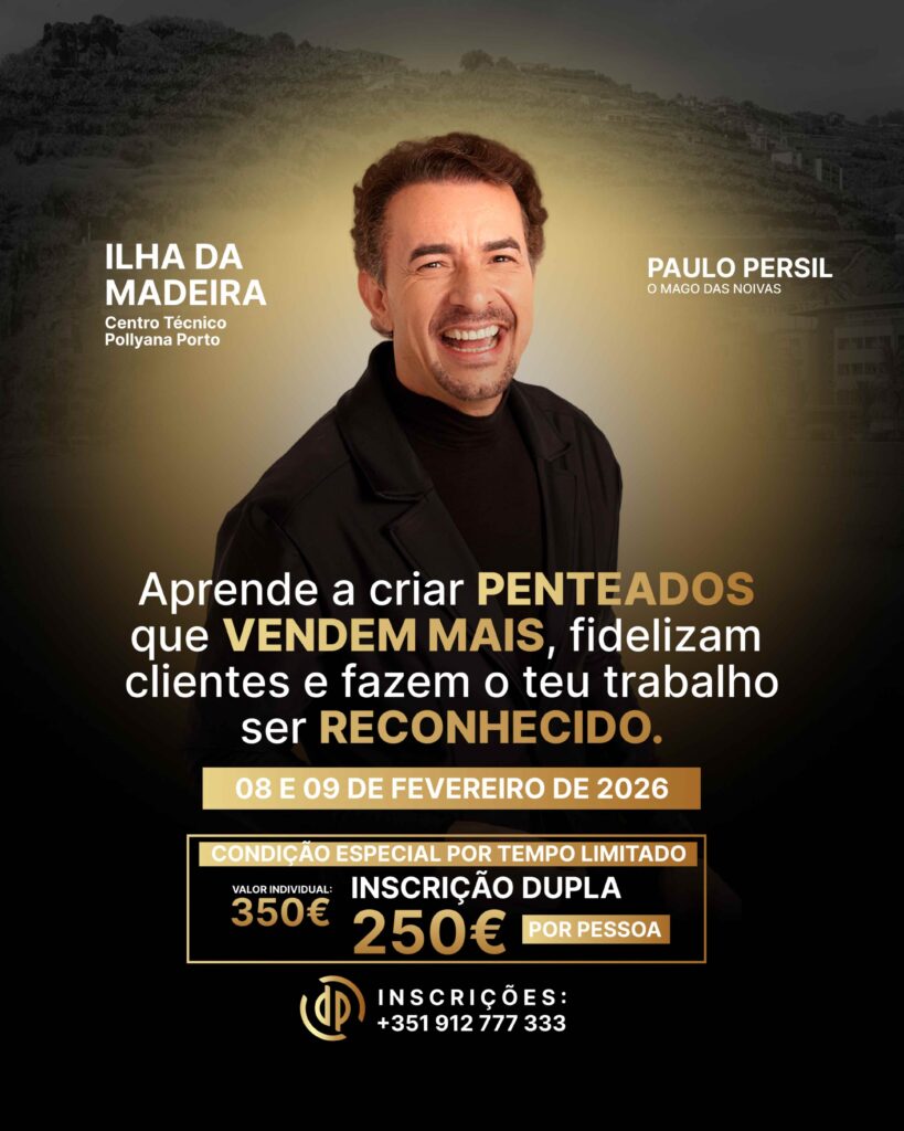 Durante dois dias intensivos, vais aprender as técnicas, acabamentos e estratégias que tornaram o nome Paulo Persil, o “Mago das Noivas” — uma referência internacional em elegância, beleza e produções de luxo.